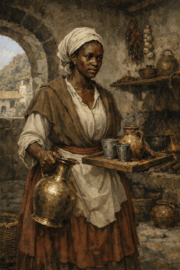 Tras la conquista en el siglo XV, la esclavitud comenzó con la captura de la población indígena guanche, pero rápidamente giró en el siglo XVI hacia la importación mano de obra esclava, principalmente subsahariana, aunque también morisca, para sostener el auge de la industria azucarera; sin embargo, con la transición al cultivo de la vid en el siglo XVII y la posterior crisis comercial, el sistema perdió su carácter de explotación agrícola intensiva para volverse predominantemente urbano y doméstico, diluyéndose progresivamente hacia el siglo XVIII gracias al mestizaje social y al aumento de las manumisiones, la liberación de los esclavos. Por lo tanto, en una familia del siglo XVIII, poseer esclavos domésticos dejó de ser únicamente una necesidad laboral para convertirse en un símbolo de estatus y prestigio fundamental. Para la élite isleña, mantener un séquito de esclavos «de puertas adentro» (pajes, cocineras, nodrizas o acompañantes) era una herramienta de ostentación pública; no se les valoraba tanto por su producción económica, sino porque su presencia demostraba la riqueza, el poder y la «calidad» de la familia propietaria frente al resto de la sociedad.