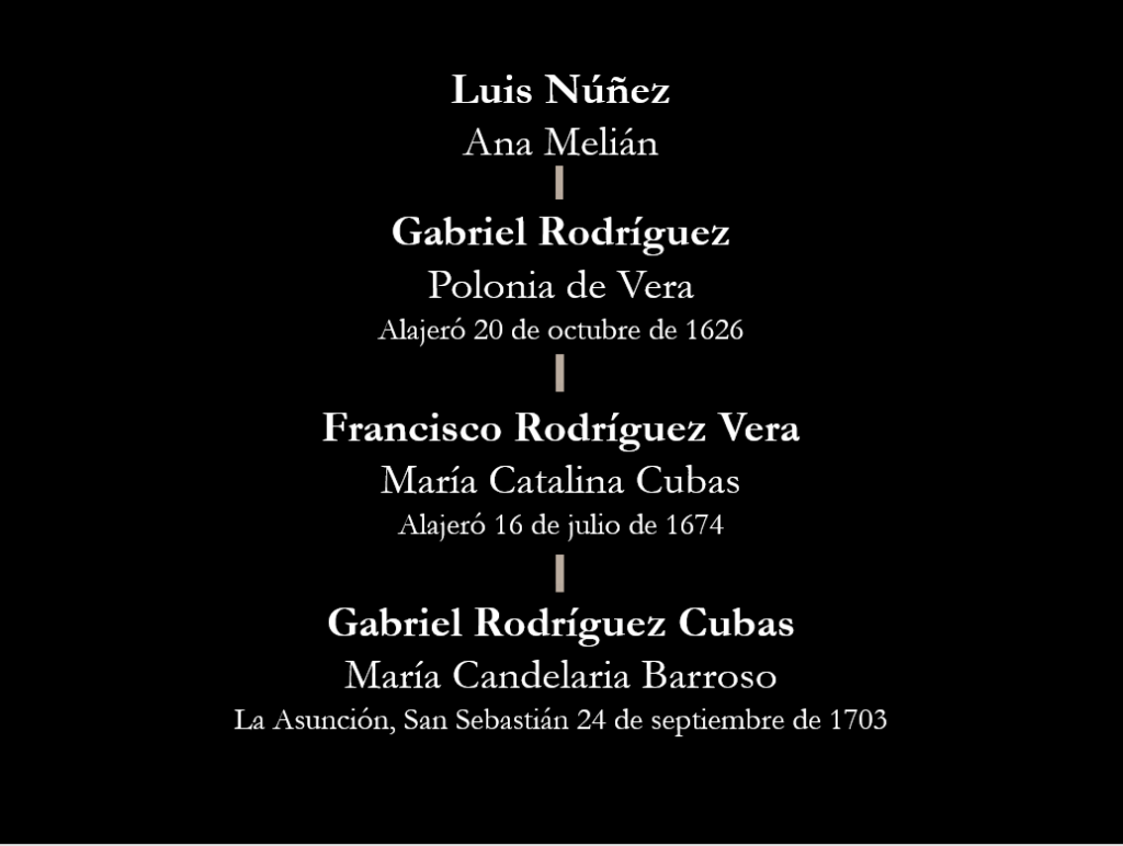 Ascendemos una generación para conocer a los padres de Antonio Ramón, los mismos fueron José L. Rodríguez Herrera y Francisca María Clemente Lazo, ambos son naturales de Vallehermoso, casados en la Parroquia de San Juan Bautista de la mencionada localidad en 1825.